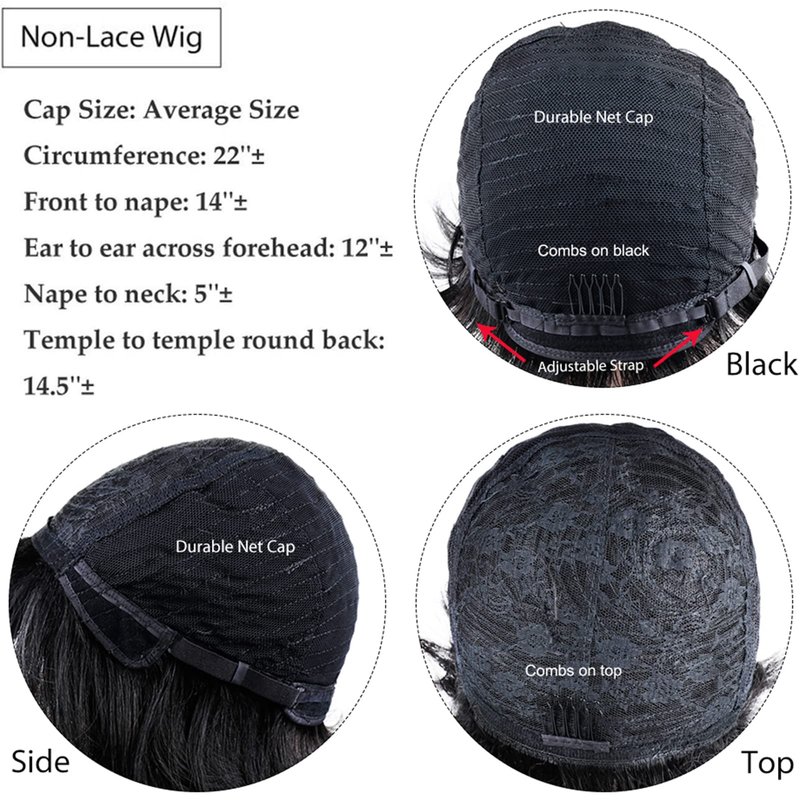 Short Wigs Human Hair: 1. Brand:SAEIALL 2.Hair Texture: Short Pixie Cut Wigs with Bangs,Pixie Wigs for Black Women Human Hair ,Human Hair Short Wigs,Short Wigs with Bangs, Glueless Wigs for Black Women. 3.Hair Material:100% Real Human Hair,No Smell,No Animal Hair,NoTangle,No Shedding 4.Density: 150% density. 5.Cap Size: Average Size, the cap is 22-22.5 inch,Cap Circumference 22.5 Inches ,Front to nape: 14.5 Inches, elastic bands to adjust Q1:How to care Pixie wig ♥ Wash and deep care of hair in one week . ♥ Detangle hair gently with your fingers before washing. Do not rub or twist hair straight your wig relax . ♥ Add shampoo to cool water and wash hair carefully. ♥ Let hair to dry with natural air. Do not put it to sun or dry by hair drier. Put a little oil to make hair soft after washing. Q2:What occasion is this wig suitable for? My friend, wear it on Christmas, Birthday, Party, Wedding, Daily, Ceremony, Outing, Shopping, etc. Will get a lot of compliments, let yourself dress up and enjoy!