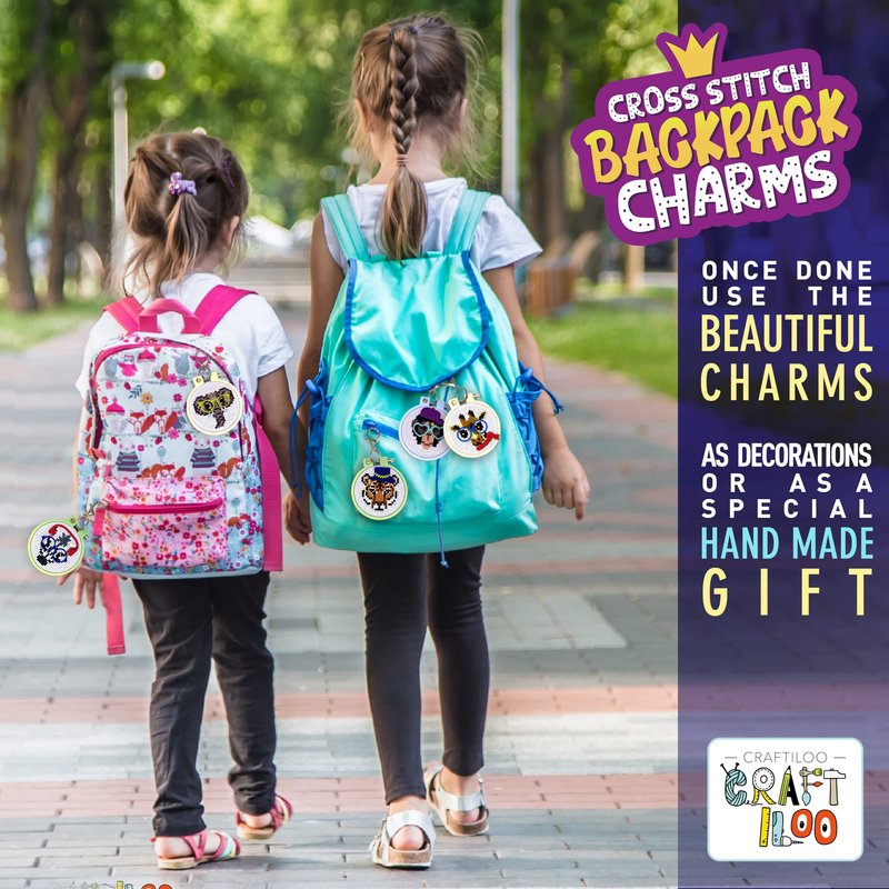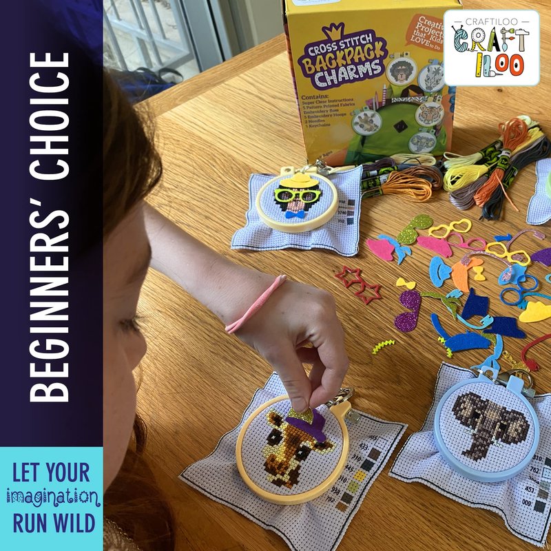 Learn the basics of cross stitch with this kids’ needlepoint kit for beginners. Nurture creativity and dexterity through sewing these colorful cross stitch patterns for kids. Spend time with your child doing cross stitch embroidery. The printed pattern on the surface of the fabric makes stitching easy. Craft and learn sewing with friends during slumber parties or playdates with 5 fun cross stitch projects. Hang the finished embroidery projects with the included keychains on your backpack as a cute charm.