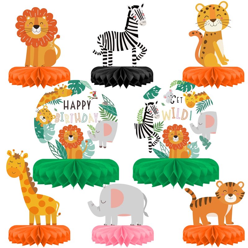 - This party pack includes 8 pieces of Honeycomb Centerpiece decorations in 8 diverse styles centering on Jungle Animals