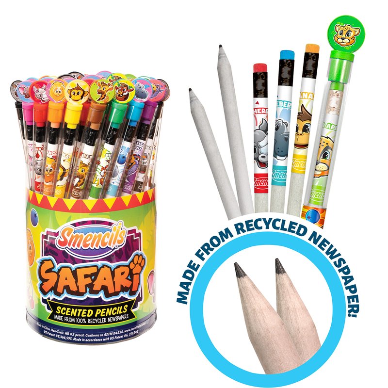 Safari Smencils Cylinder - HB #2 Patented Gourmet Scented Pencils, 50 Count, Gifts for Kids, Classroom Rewards, Party Favors, Stuffers