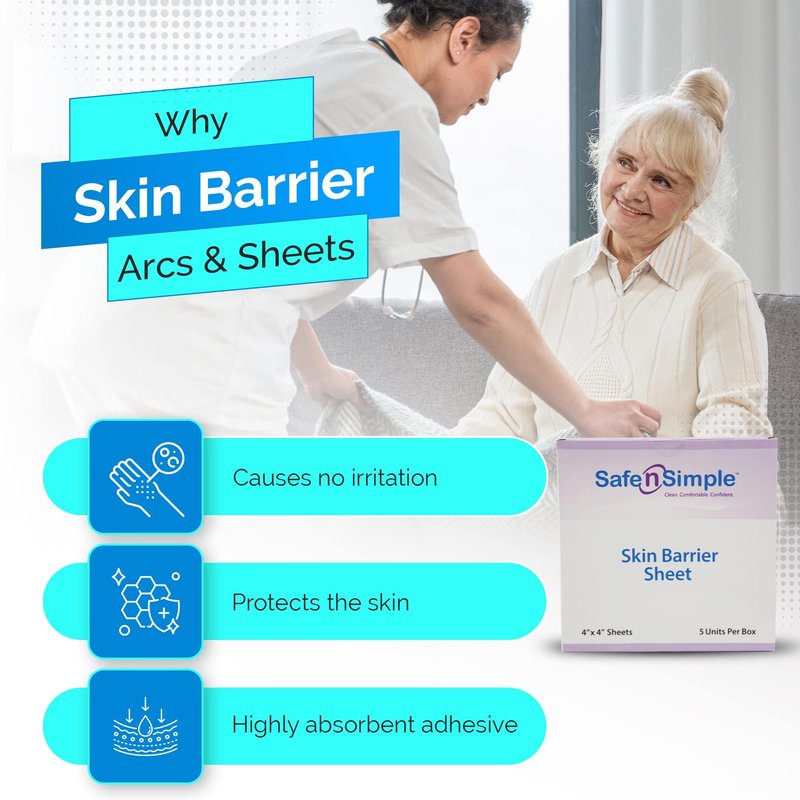Safe n' Simple Skin Barrier Sheets - 4" x 4" Individually Wrapped Packets - Protective Stoma Skin Barrier Sheet - Hydrocolloid Medical Ostomy Barrier Sheet - Skin Adhesive Sheets for Ostomy Protection