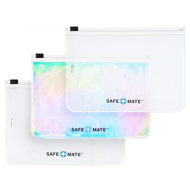 Safe+Mate - Face Mask Storage Bags - (3) Reusable - Carrying Pouch - Fits Most Cloth Face Masks - 3 Pack - 2 Frosted/1 Holographic
