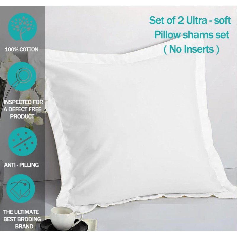 Saferay Green 100% Egyptian Cotton Pillowcase, 26x26 Inches, Pillow Shams for Bedroom, Hotel, Home Decor Soft and Breathable, Stitch Wrinkle Free Cushion Throw Pillow Cover (White, European, 2 Piece)