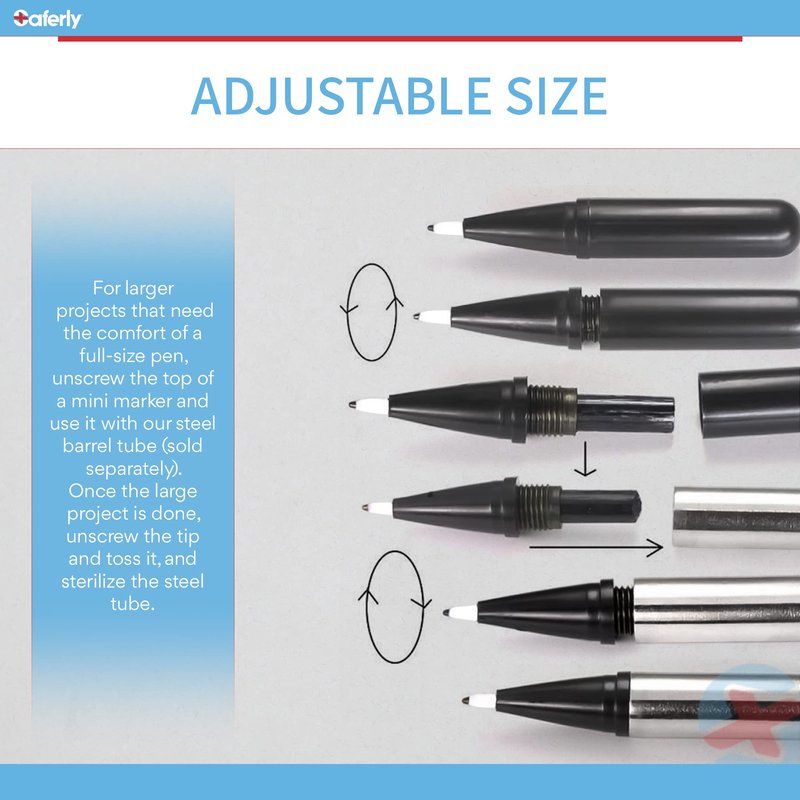 - SURGICAL SKIN MARKER PEN – Saferly Mini Surgical Skin Markers are the ideal body markers to safely mark your client’s skin for body piercings, tattoos, or body art applications.
