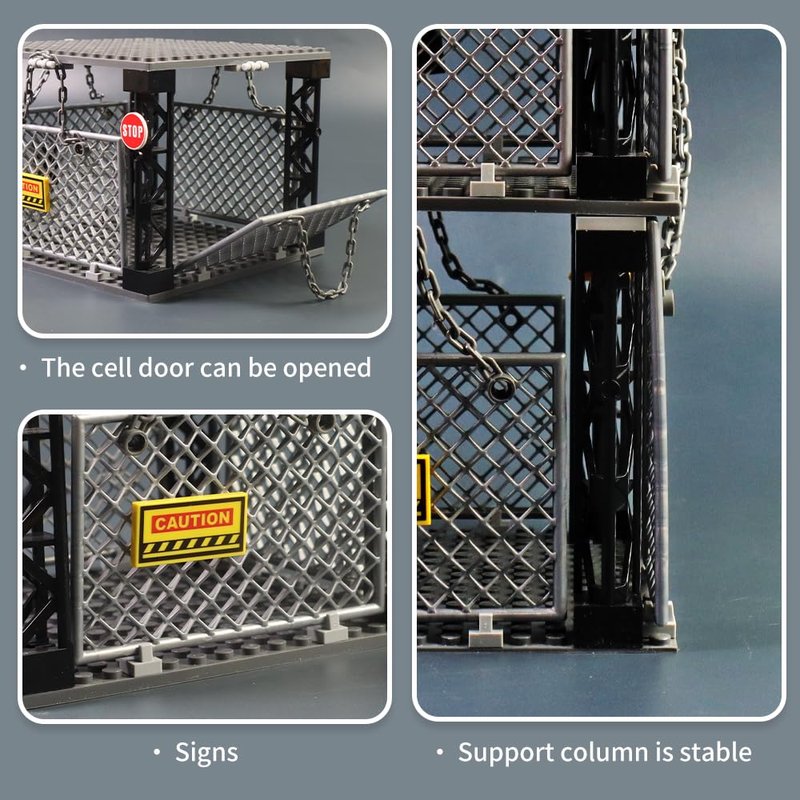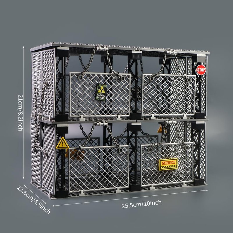 Safety Guardrail,Closed Cage Building Blocks Set,Compatible with Lego jurassic world t rex ,Halloween Jail,WW2 Military and More Scene,Playset for Boys and Girls Ages 6+