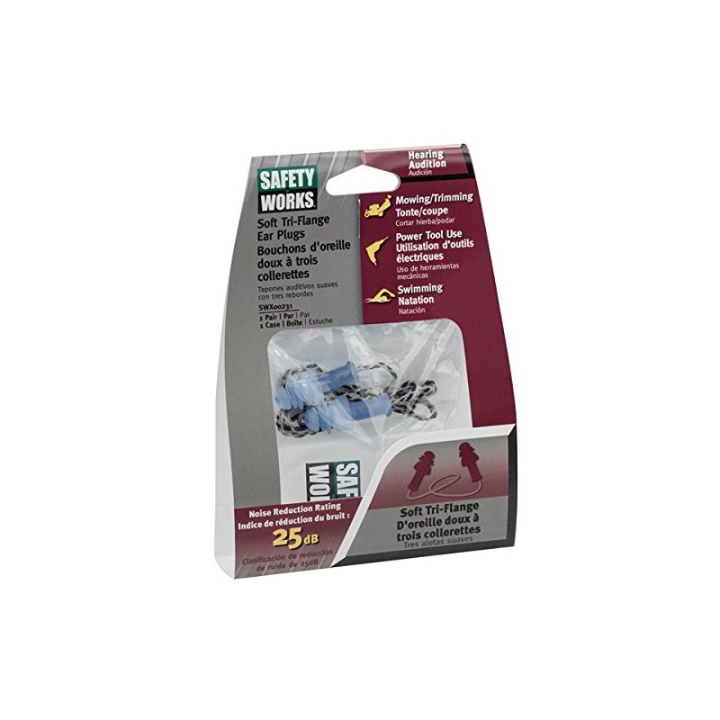 Safety Works SWX00231 Tri-Flange Ear Plugs with Case, Corded Reusable, NRR 25 DB