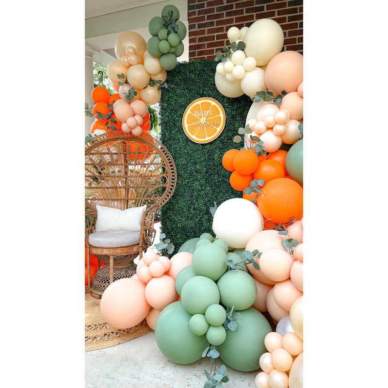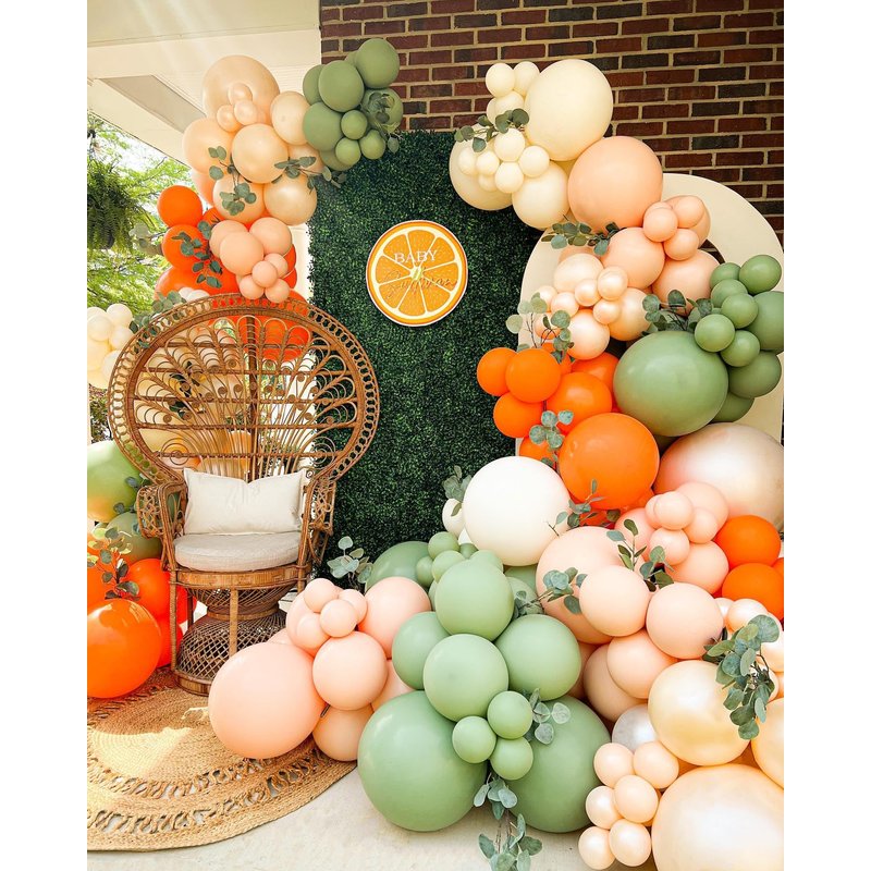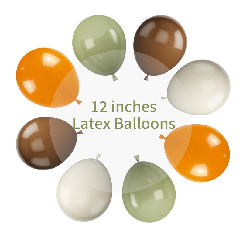- 12 Inch sage green and orange balloons: Package content includes 15 pcs sage green balloons, 13 pcs cream balloons, 12 pcs orange balloons,10 pcs brown balloons, a balloon ribbon