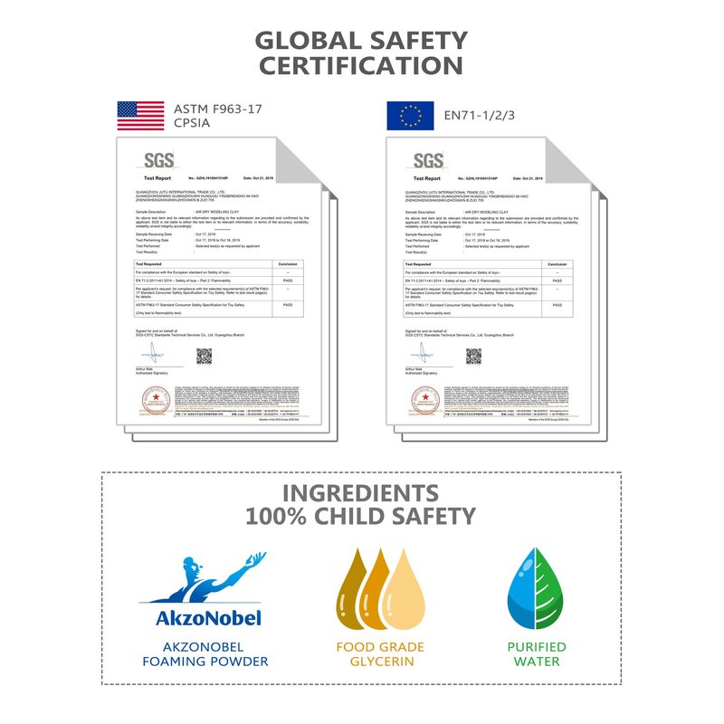 Compared to other clay - Sago Brothers air dry clay is 100% safe, without odor, and allergen friendly. Compliant with United States and European toy testing standards for 2019.