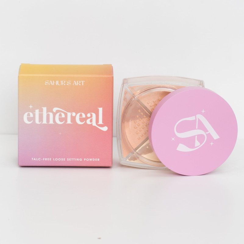 Sahur's Art Ethereal Loose Setting Powder in Peach for Setting Face with Powder Puff for Mattifying Smooth Pores Blurring
