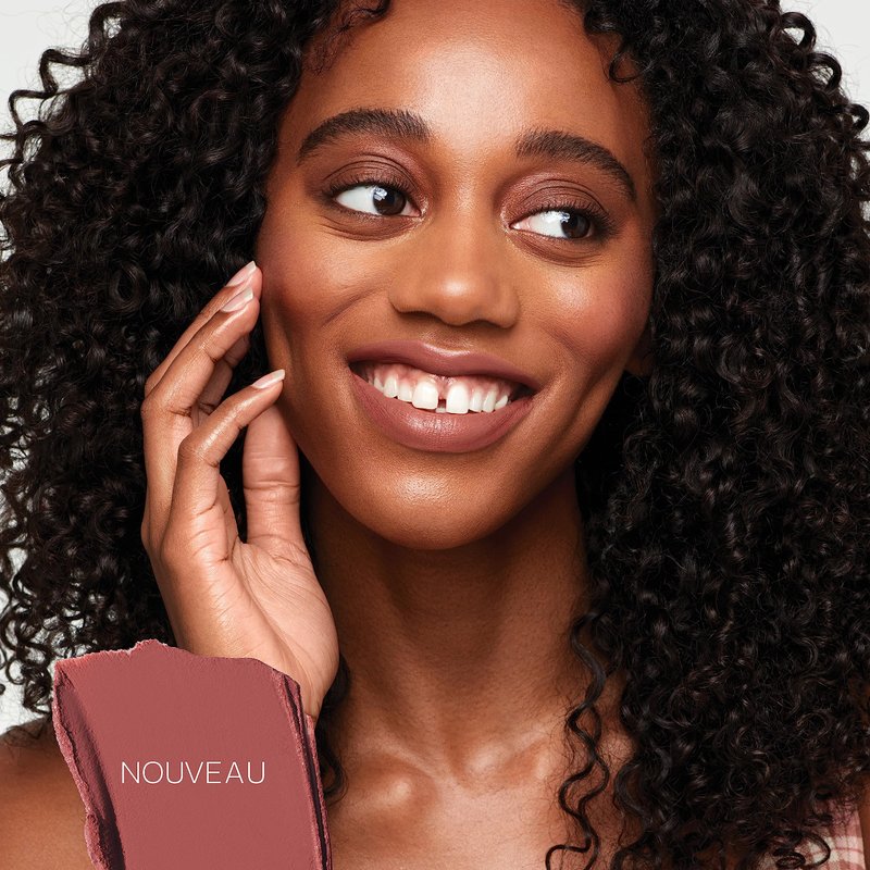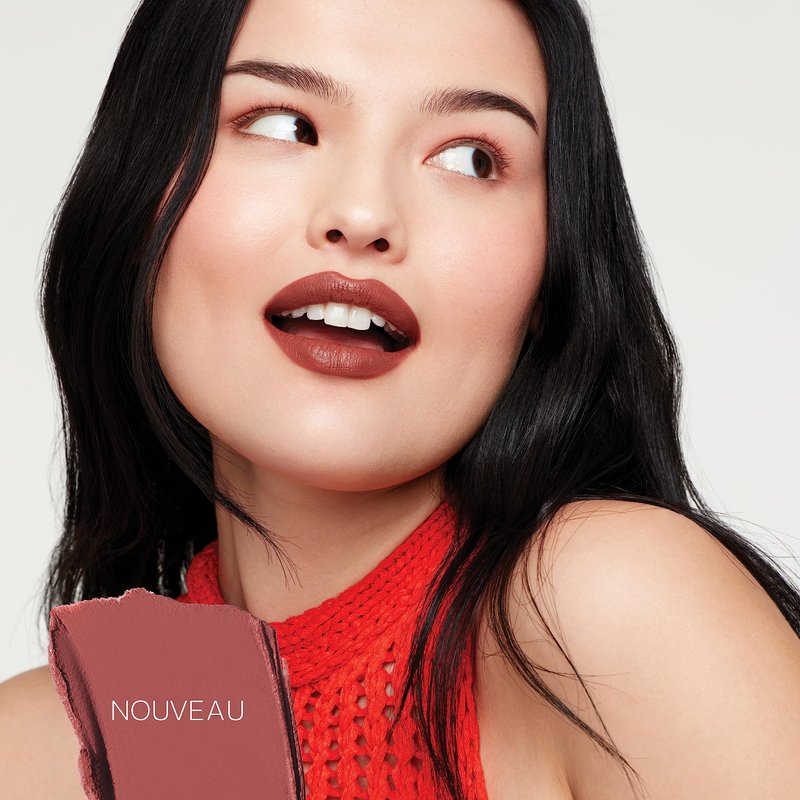 - A clean matte lipstick done the Saie way. It's longwearing, shine-free, and hydrating. The shade Nouveau is a mid-tone brown lip color.