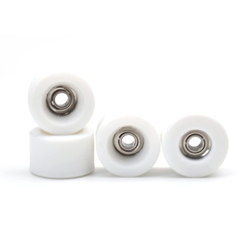- 【SUITABLE FOR RIDERS OF ALL SKILL LEVELS】Many fingerboarders love them because the high density material wheel make it extremely wear resistant and premium bearings make it high speed and rolling smoothly,these urethane wheels make the squeak sound as you powerslide across a surface or do a sharp turn