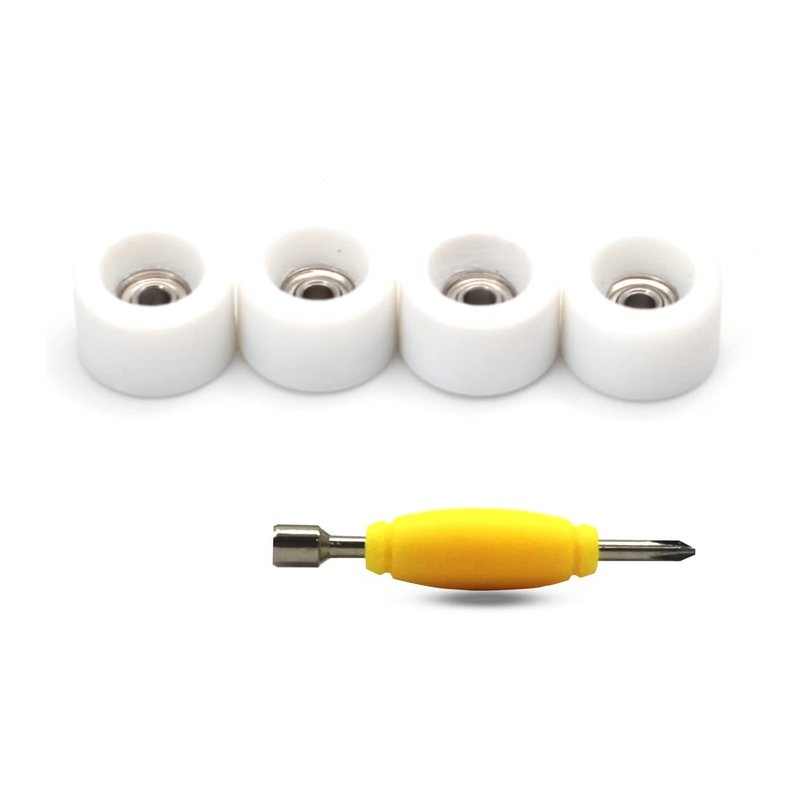 Set includes 4 fingerboard wheels and 1 fingerboard tool: