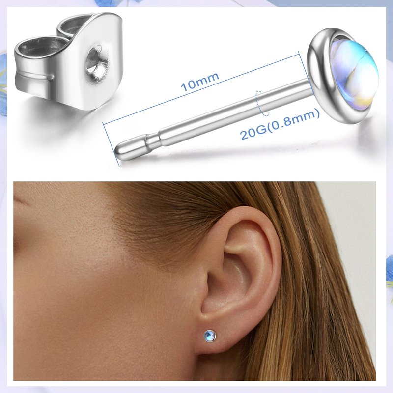 - 【Stud Earrings Design&Size】Surgical steel post Gauge: 20G=0.8mm, post length: 10mm. cubic zirconia/opal/turquoise/moonstone size:4mm,regular size, suitable for most women girls men to wear, small and dainty earring studs, can be worn alone or stacked, butterfly buckle design, easy to put on,take off and adjusted to your desired position.