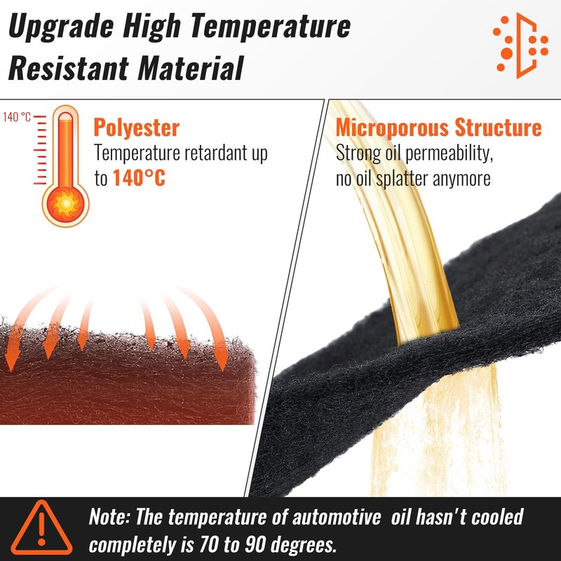 - 【Wide Application】The oil drain splash pad material is resistant to engine oils, transmission fluids, coolants, brake fluids, brake cleaners, gear oils and other solvents.