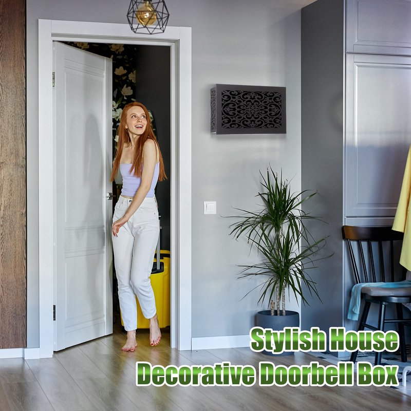 Doorbell Chime Cover Box Only, Decorate Your Old Doorbell, Color Your Life Feature: Classical design: The pattern is designed by ourselves, unmatched, simple and good looking. This doorbell chime cover will not distract the sound of the doorbell, not only beautify the doorbell but also decorate the wall. Fits universal doorbell chimes, easy installation with adhesive tapes. Specifications: Outer Size (LWH): 23.4 x 14 x 7 cm Inner Size (LWH): 22.5 x 13.2 x 6.5 cm Material: wooden Color: dark gray Package includes: 1 x Doorbell Cover 2 x Double side adhesive tape Note: Please confirm the product size before purchasing Please allow slight difference in size due to the manual measurement