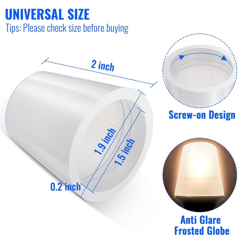 - Universal Fit: our universal size rear boat light cap replaces standard 2 inch translucent globes; With an outside diameter of 1.9 inches, inside diameter of 1.5 inches, and a height of 2 inches; Make sure to check the size before making your purchase