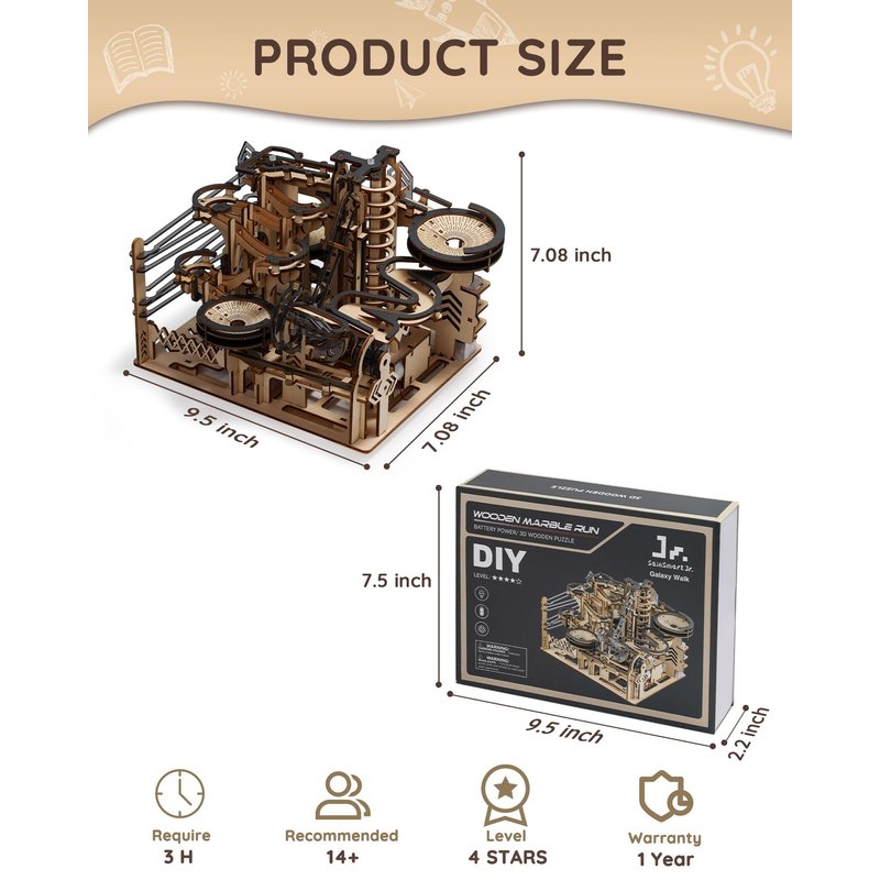 Sainsmart Jr. 3D Wooden Puzzles for Adults, Electric Marble Run Building Kit, Wooden Model Kits Spaceport, Creative Gifts for Teens Ages 14+ (Galaxy Walk)