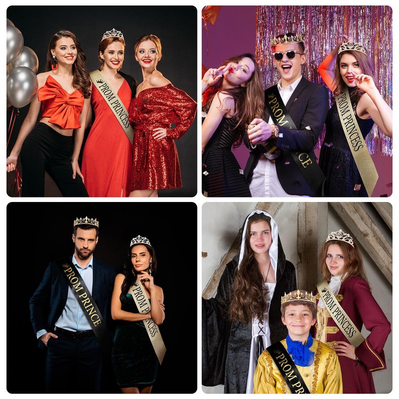 - What You Will Obtain: our package includes prince prom crown and princess prom crown set, prom sashes in black and gold, totally 4 pieces, you can wear them with your friends together, enough quantity will meet your needs