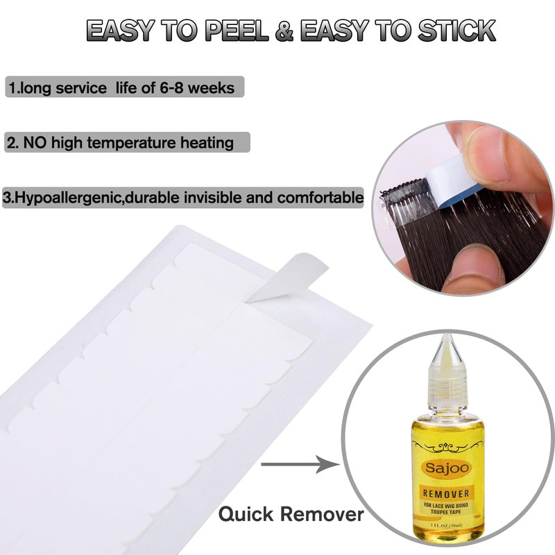 Sajoo front lace tape product has been professionally identified, the product is non-toxic, safe and skin-friendly, and will not cause irritation to your skin, and 180pcs of front lace tape can meet your large needs. Easy to operate and safe to use. Can care for your skin, easy to remove, don't worry about residue