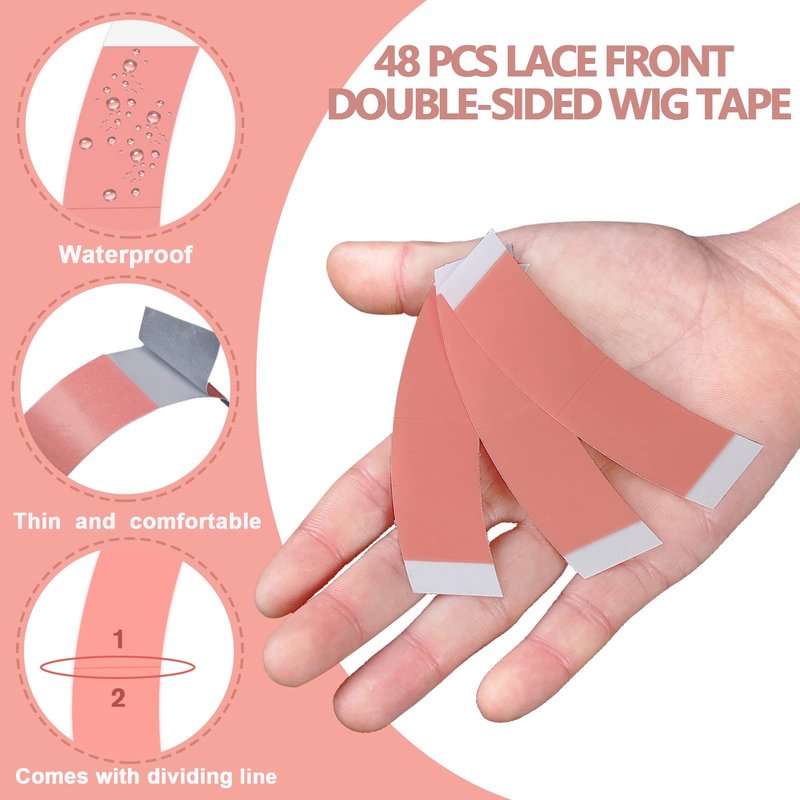 SAJOO 48 PCS Lace Front Wig Tape Adhesive Tape Double-Sided Waterproof Lace Wigs Wig Tapes Waterproof Lace Tape C-Shaped Wig Tape Hair Wig Tape for Wigs Toupees Hair Extension and Hair Pieces (Pink)