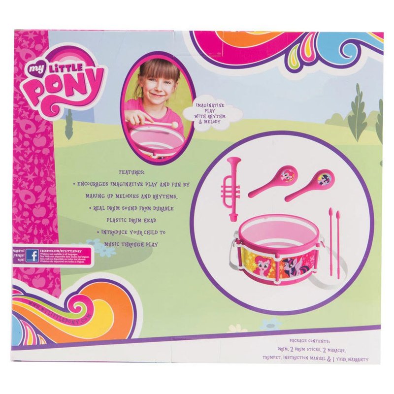 - GREAT SOUND & STYLE: The musical My Little Pony set comes with a high quality drum, kids trumpet, 2 rhumba shakers, and 2 drumsticks for kids, giving you an extremely well-rounded toy drum set collection. Give your household My Little Pony fans a toy for kids that can help them develop motor skills, coordination, and melody with the stylish My Little Pony Kids Drum Kit!