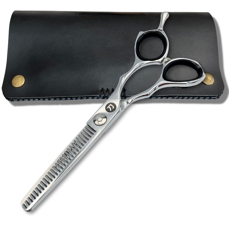 Finishing styles has never been more comfortable than with the Saki Kotaro Thinning Shear. Featuring an ergonomic design and offset handle to reduce hand and wrist fatigue while you thin out and/or add texture to hair. Handmade using 440c Japanese stainless steel the Kotaro thinning shear will provide with years of cutting in comfort. Thinning Shear in 5.5 inch has 27 teeth while 6 inch thinning shear has 30. Includes Hair Razor and Leather Carrying Case.