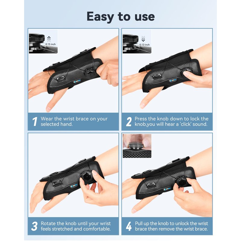- Revolutionary Rotary Knob Design - This wrist support brace is designed with rotary knob that allows for flexible tightness adjustment, uniform force distribution and enhancing your overall performance. The knob can be easily operated by just TWO fingers, making it an ideal choice for the elderly and people with weak or injured wrists.