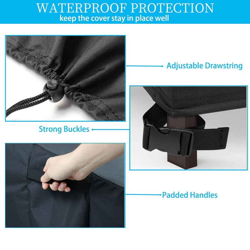 - DOUBLE WINDPROOF DESIGN: The built-in buckle straps on on diagonal sides to lock around the fire pit legs,make the cover stay firmly in strong wind. And the drawstring at the hem makes the cover fit snugly.