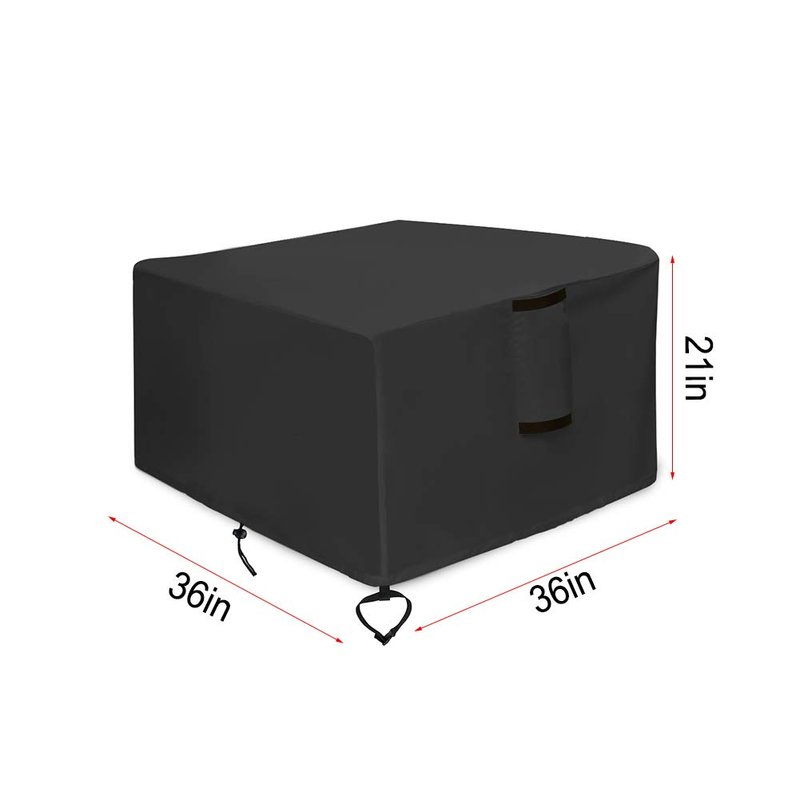 - Our cover is designed to fit up to 28" square fire tables and features a 100% windproof design with 2 built-in buckle straps and a drawstring at the hem to keep it snugly in place.