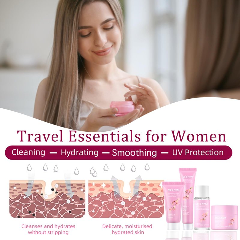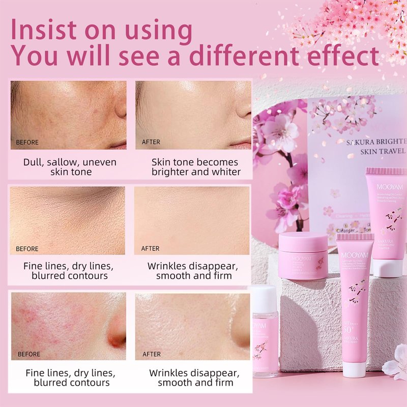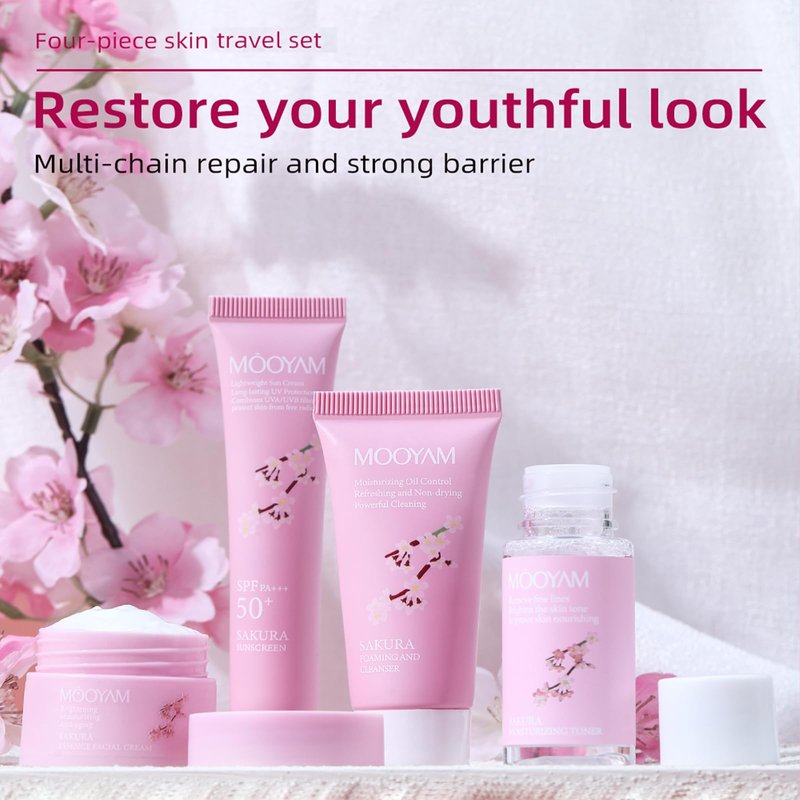 Sakura Skin Care Kit - Refreshing Skin Care Set - Gift Set for Women - Travel Essentials for Women - Travel Size Face Wash-Toner-Moisturizer-Sunscreen - Moisturizing Oil Control Skin Care Sets & Kits