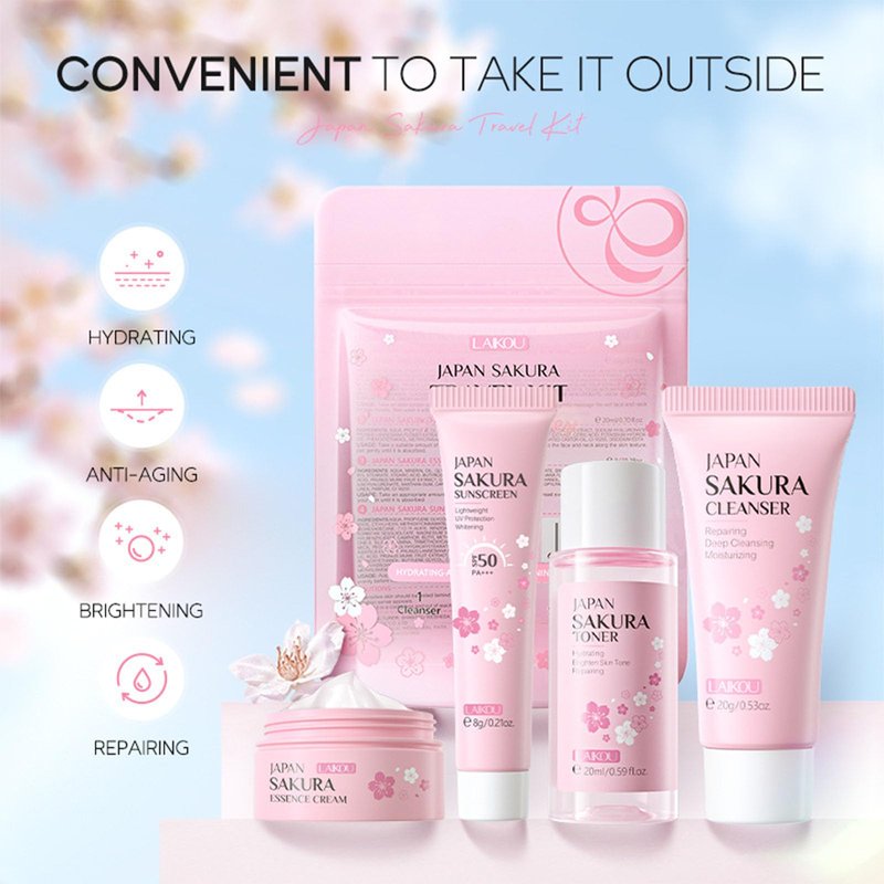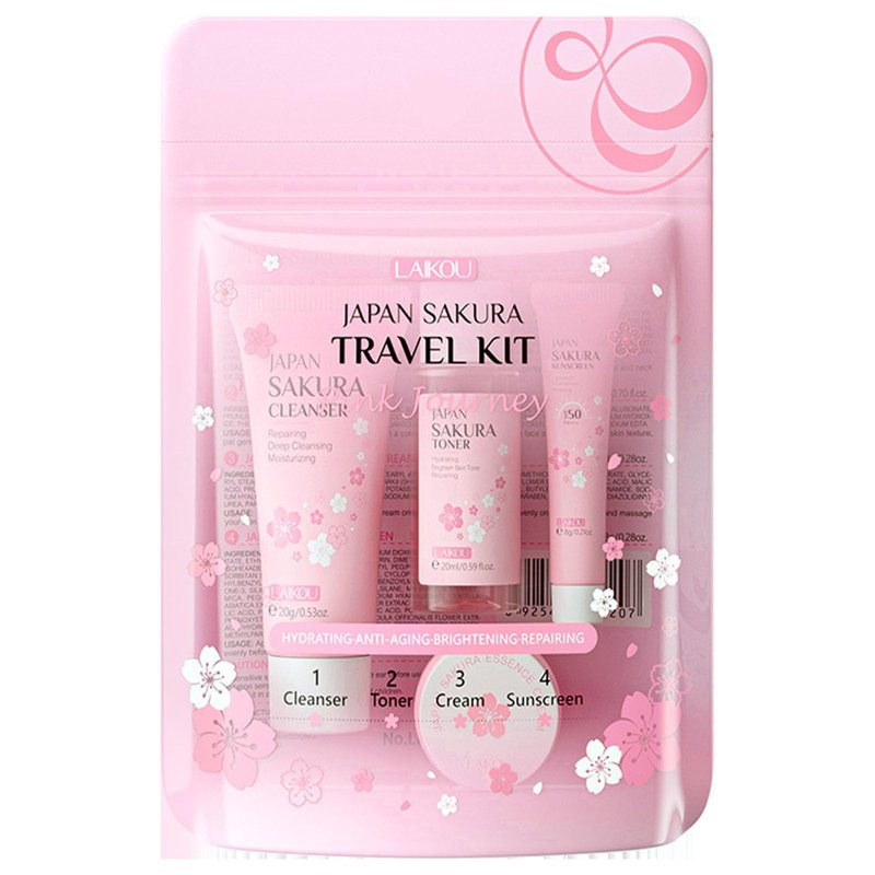 Sakura Travel Skincare Set for Teenage Girls - Face Routine Set for Women,4 Piece Gentle Skin Cleaning & Care Travel Size Kit With Cleanser, Toner, sunscreen and Face Cream
