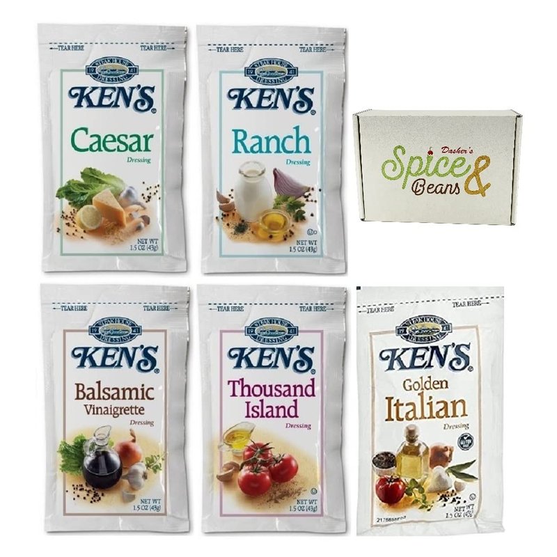 Salad Dressing Packets 1.5 oz. - 5 Flavors - Caesar, Ranch, Balsamic Vinaigrette, Thousand Island & Golden Italian (3 Each - Pack of 15)