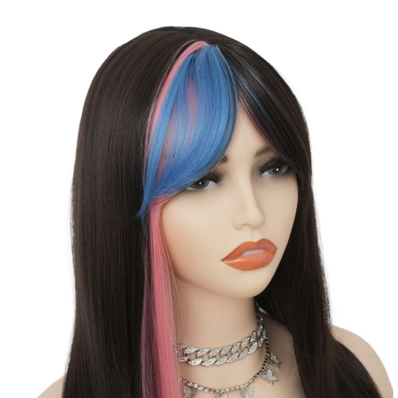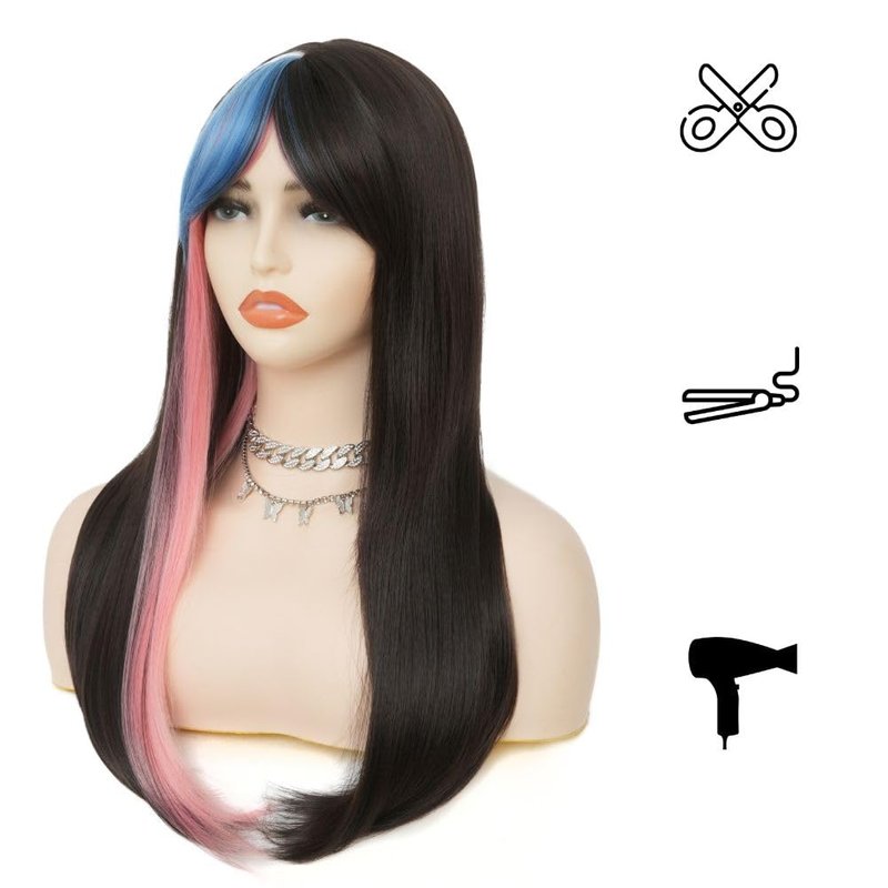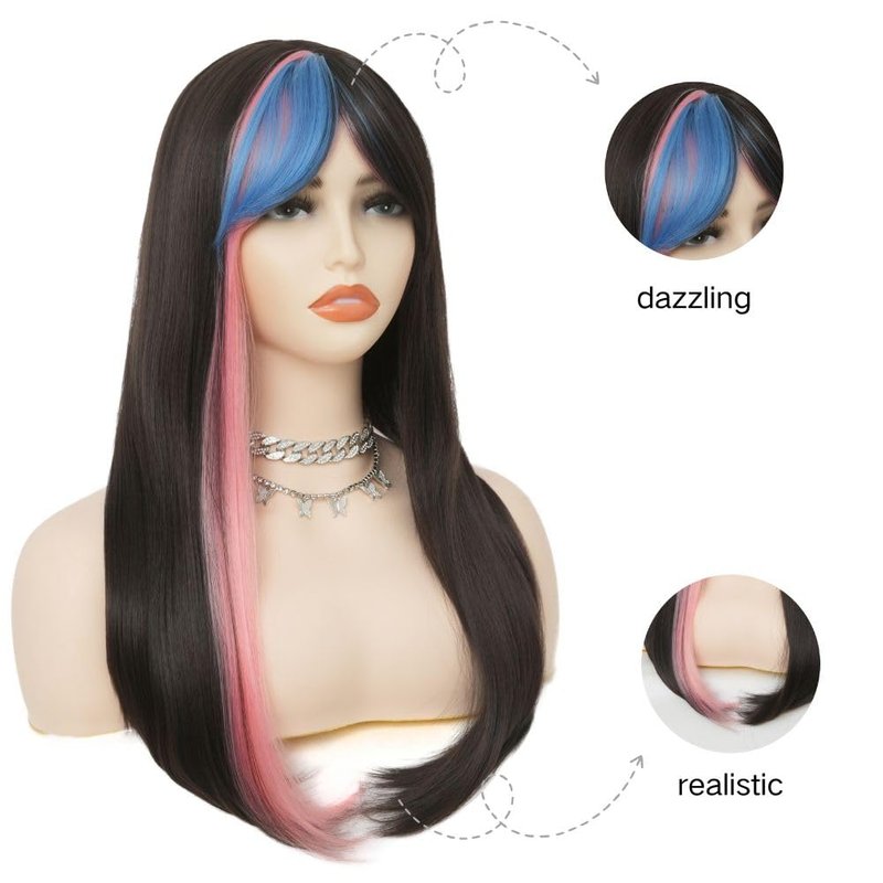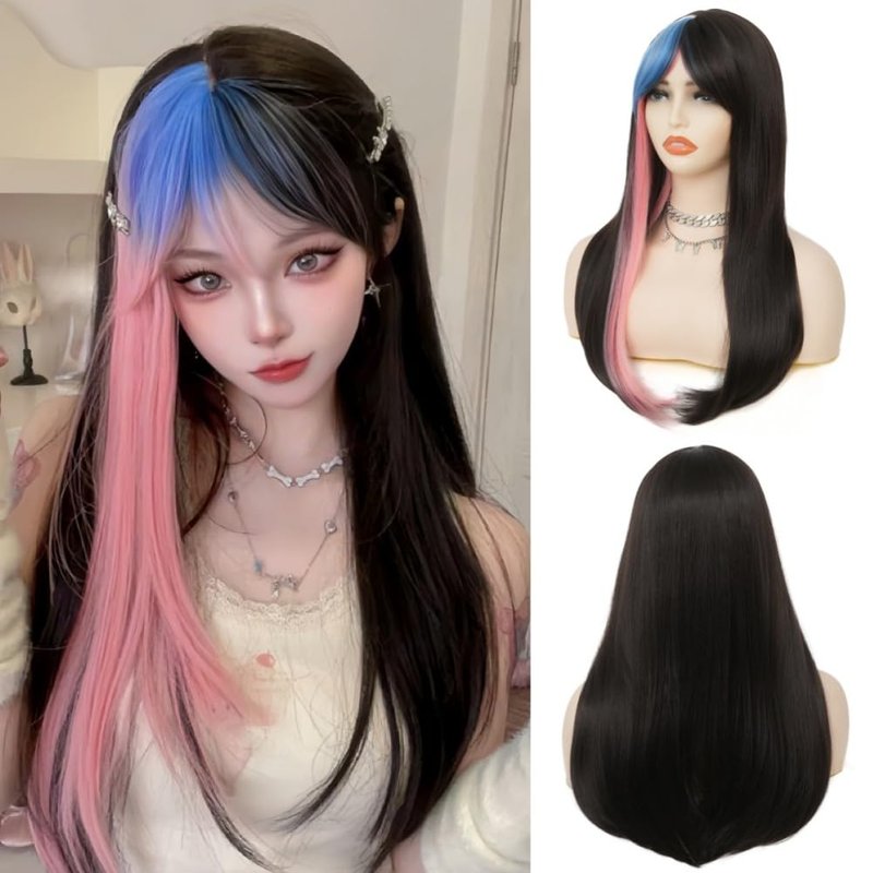 - Color: Black mixed pink wig with blue bangs,you can also DIY according to your needs,match different clothing and bring different experiences.