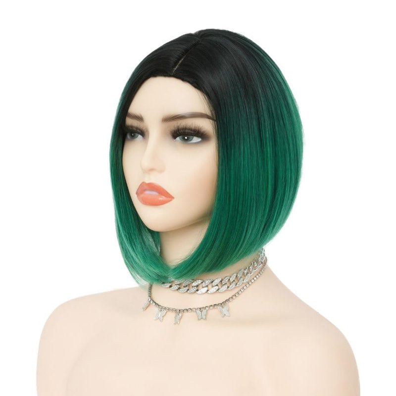 - Wig Style: Green short wig with dark roots.Unique design suitable for any face shape.