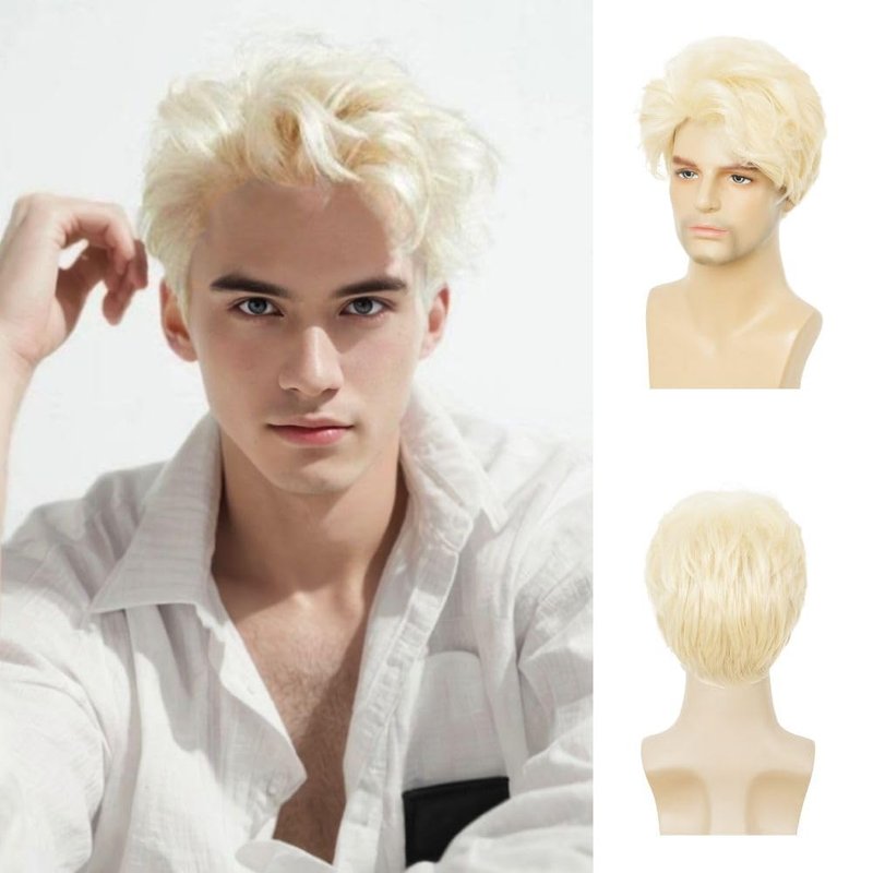 - Style:Short blonde mens wig,suitable for most males.