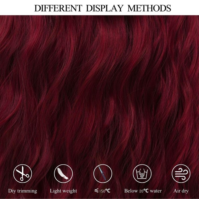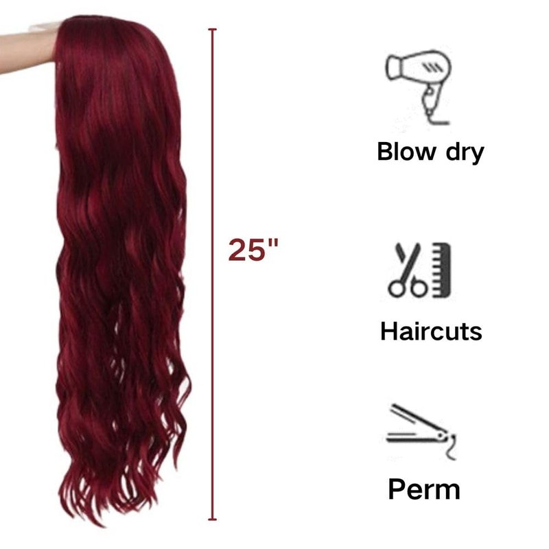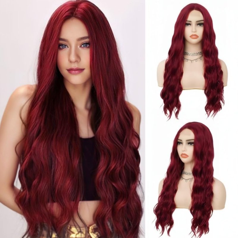 - 【Wig Quality】Red long wavy wigs made of synthetic heat resistant fiber,lace front wigs adopts advanced production techniques,the hairline made by hand-tied,looks more real.