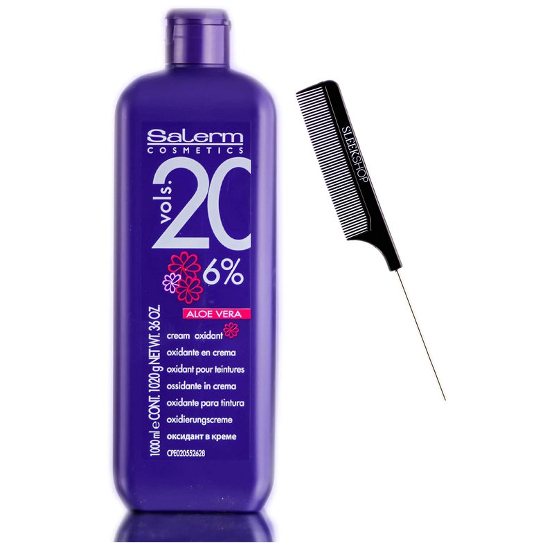 Salerm Cosmetics ALOE VERA Developer Cream Oxidant (w/Sleek Comb) Hydrogen Peroxide Activator for Vision Hair Color Salermvision Haircolor Dye (20 Volume / 6% - 1000 ml)