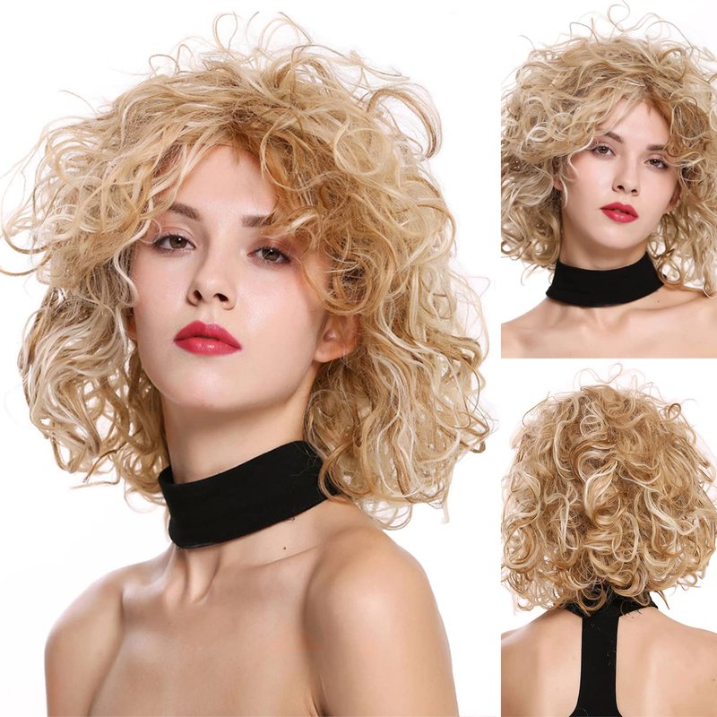 - 【Popular Style】short curly mixed blonde hair wig looks natural and fashion,it's very thick soft and fluffy, keeps the curls well.