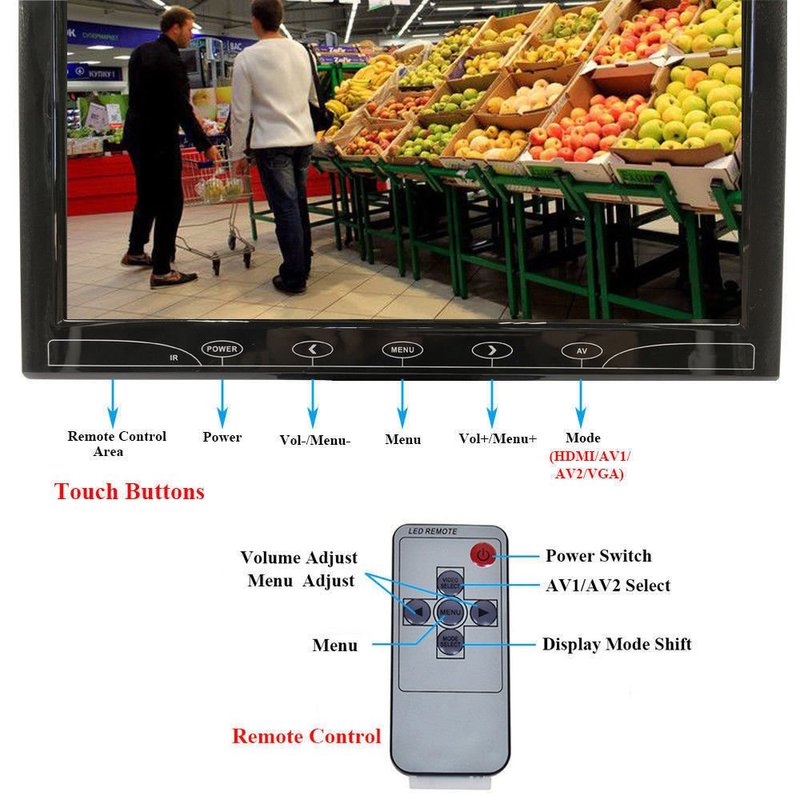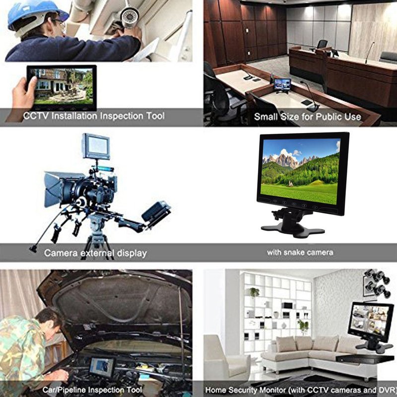 - 【Package List & Return Policy】Package Included: 1 X 10.1" LCD color monitor; 1 X Power supply for monitor; 1 X Mount stand; 1 X AV cable; 1 X VGA cable; 1 X Remote Control; 1 X User Manual. Quality Guarantee to Cover Any Issues: Follow amazon 30 days return policy and 12 months replacement warranty.