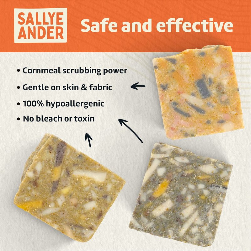 SALLYEANDER Hogwash! Soap - 1 Bar - Laundry Treatment Scrub - All-Natural Handmade Soap - Cornmeal Hand Wash