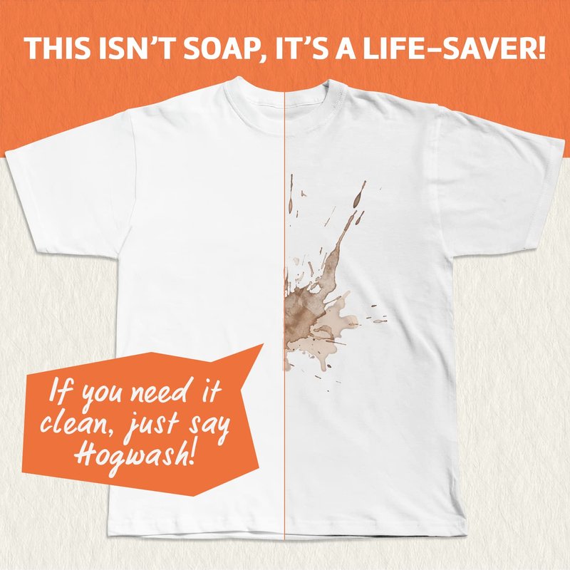 - 3-IN-1 MULTI-PURPOSE BAR: Fights stains, scrubs grime off hands, and mixes with water to use as a laundry treatment. If you need it clean, just say Hogwash