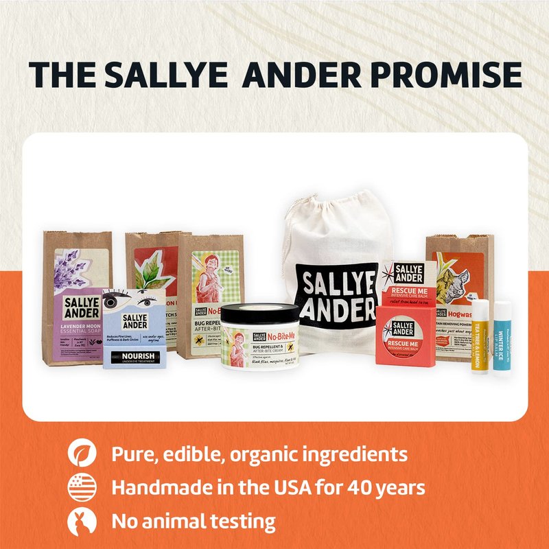 - SALLYE ANDER PROMISE: Since 1982, we’ve been a small family-owned and operated business, committed to producing high-quality, all-natural products, without unnecessary and harmful additives. Everything we make is 100% handmade in the USA from organic ingredients for happy, healthy skin.