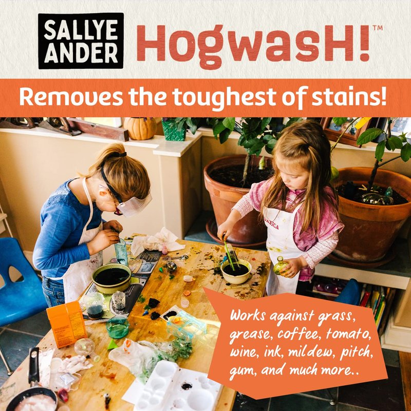- ALL-NATURAL AND EFFECTIVE: Made with 100% hypoallergenic ingredients, pure essential oils, and scrubbing cornmeal. Hogwash! is hard on stains, but gentle on fabric and skin. We never use bleach or other synthetics. Follow three simple steps to remove stubborn stains-even ones that have been through the wash!