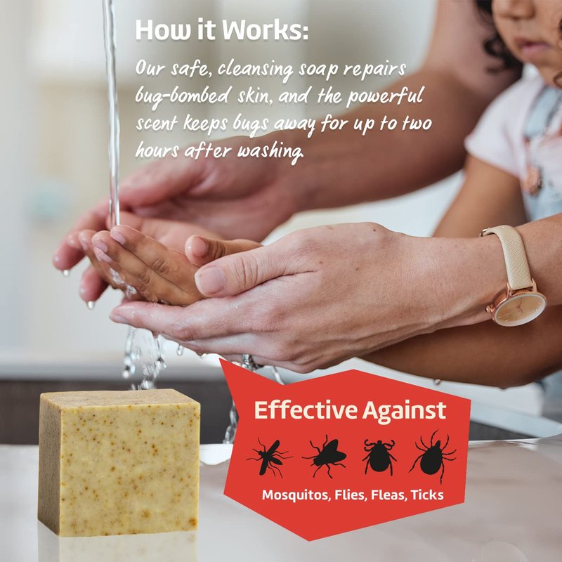 - Fast-Acting Scent: The active ingredients in our soap create a powerful, long-lasting scent that repels bugs and relieves itchy skin.