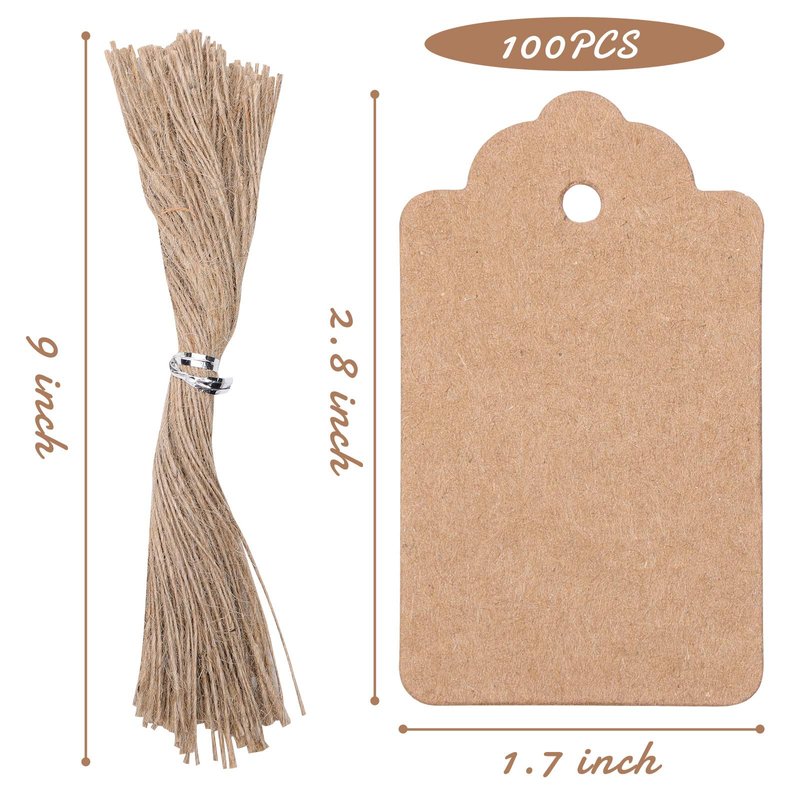 - What You Will Get - You will get 100 PCS paper tags, the package also comes with 100 PCS hanging strings. Each paper tag measurs 2.8 x 1.7 inches.
