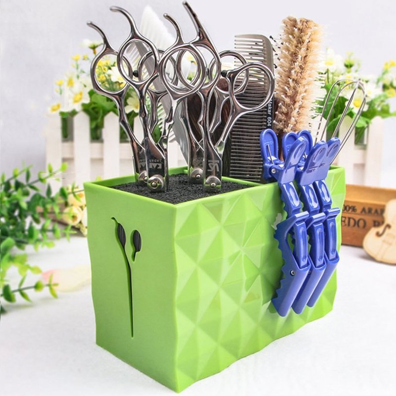 Salon Scissors Holder Rack, Hairdresser Scissor Storage Case Keeper, Modern Hairdressing Combs Clips Desktop Desk Organizer Accessories for Hair Stylist Office Home - Green