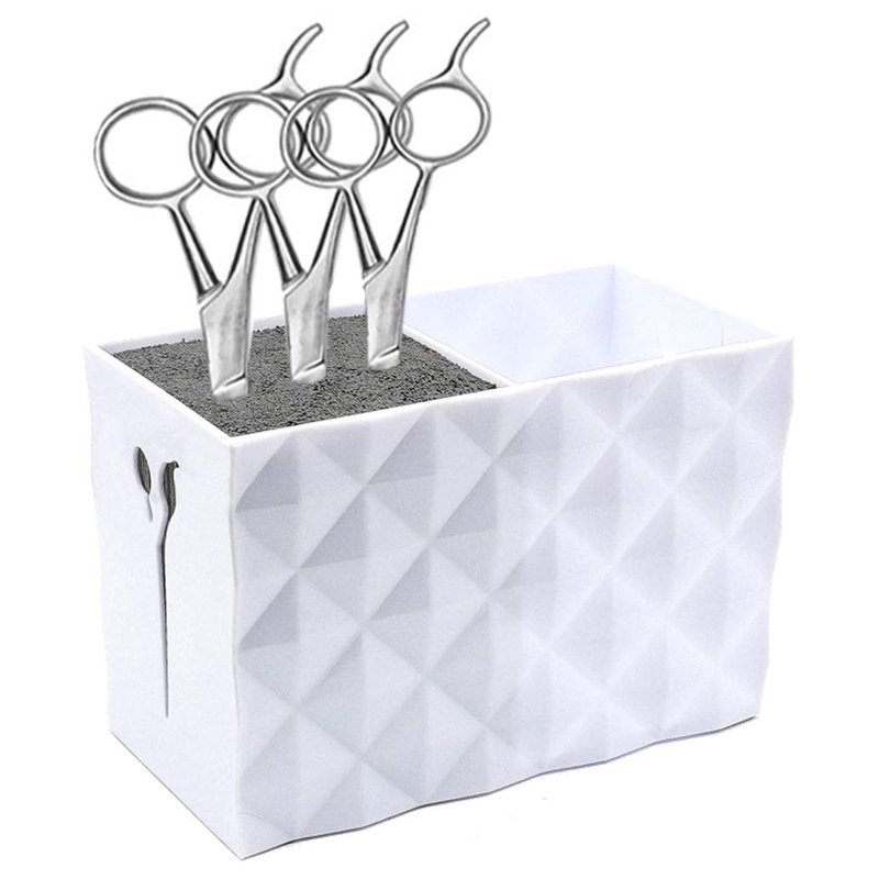 Salon Shears Rack for Hair Stylist Scissors Container for Pet Grooming Hair Cutting Organizer Storage Box Salon Shear Holder Combs Clips Brushes Hairdressing Combs Organizer (White)