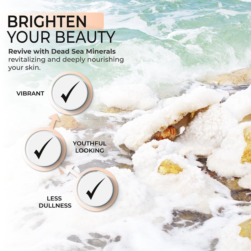 - 💧 Revive with Dead Sea Minerals: Immerse your skin in the age-old rejuvenating powers of Dead Sea minerals. This infusion breathes new life into your skin, revitalizing and deeply nourishing it.