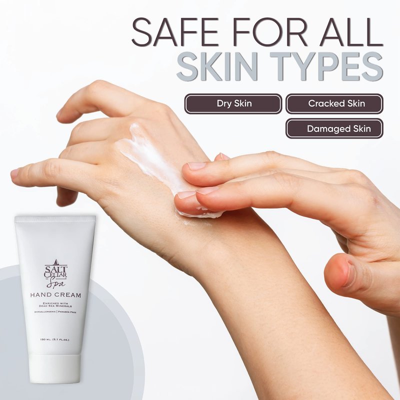 Salt Cellar Spa Dead Sea Mineral Hand Cream, Moisturizer Lotion for Dry, Cracked Skin Enriched with Glycerin, Olive Oil, Paraben Free, Fast Absorbing, 5.1 FL oz (150 ml)