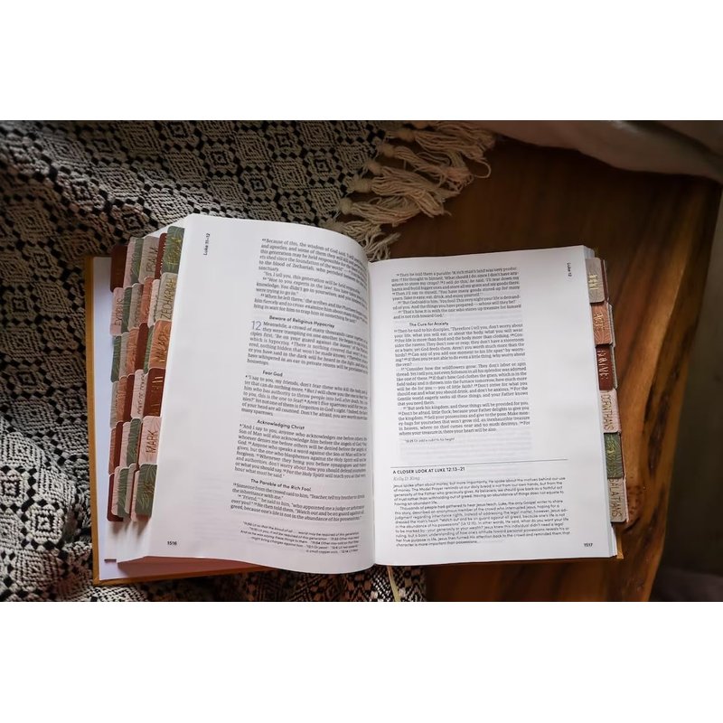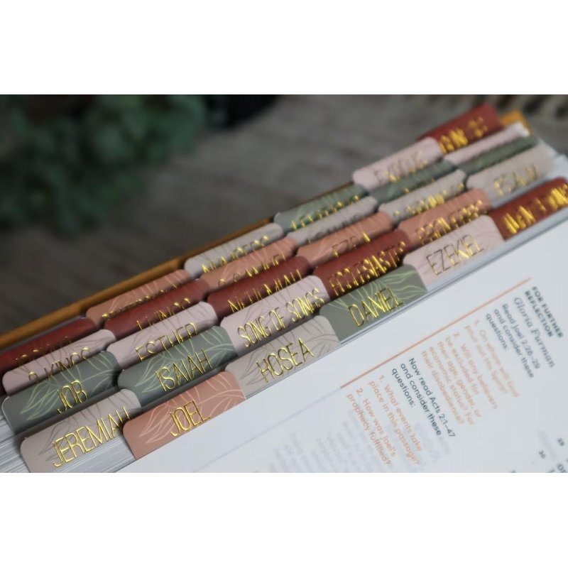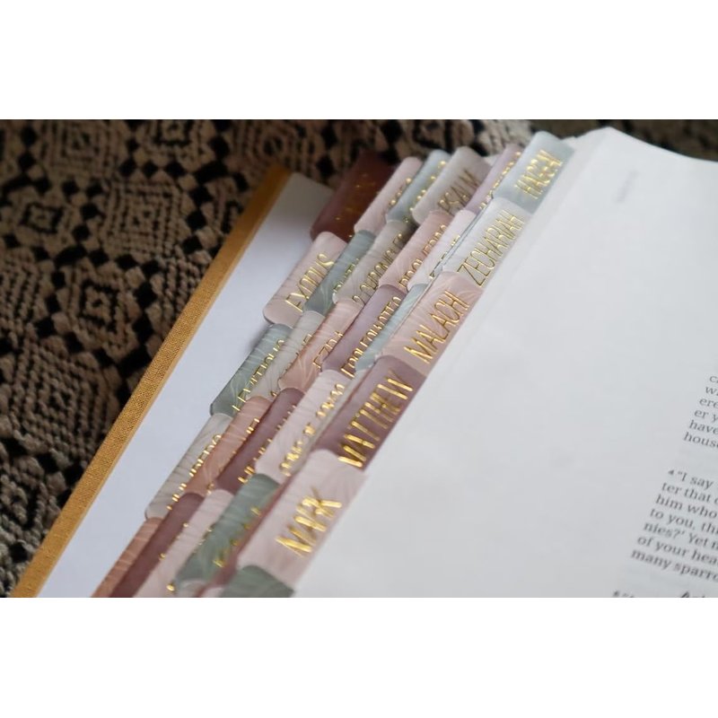 Welcome to the Salt Light Essentials shop! Our Bible Tabs are made of the highest quality GSM material that adds both rigidness and flexibility. These Tabs have undergone a unique Matte-Coated Laminating process that assures durability and allows for a flawless seal to protect from dirt, sweat, and water getting on the artwork. Each set includes one double-sided tab for each book of the Bible as well as 6 additional sticker tabs. The Lettering is made with the highest foiling standards. Our Bible tabs are the perfect addition to any Bible for both men and women. These tabs are made with a durable and high-quality material that is designed to last for years to come. The earth-colored tabs with gold foil add a unique and elegant look to your Bible, making it easy to spot on your bookshelf. The tabs are also easy to apply! With these tabs, you can quickly and easily find the book, chapter, and verse you are looking for, saving you valuable time and effort. Whether you are a student, a teacher, a minister, or just someone who loves to read the Bible, these tabs are a must-have accessory. Order now and enhance your Bible reading experience!